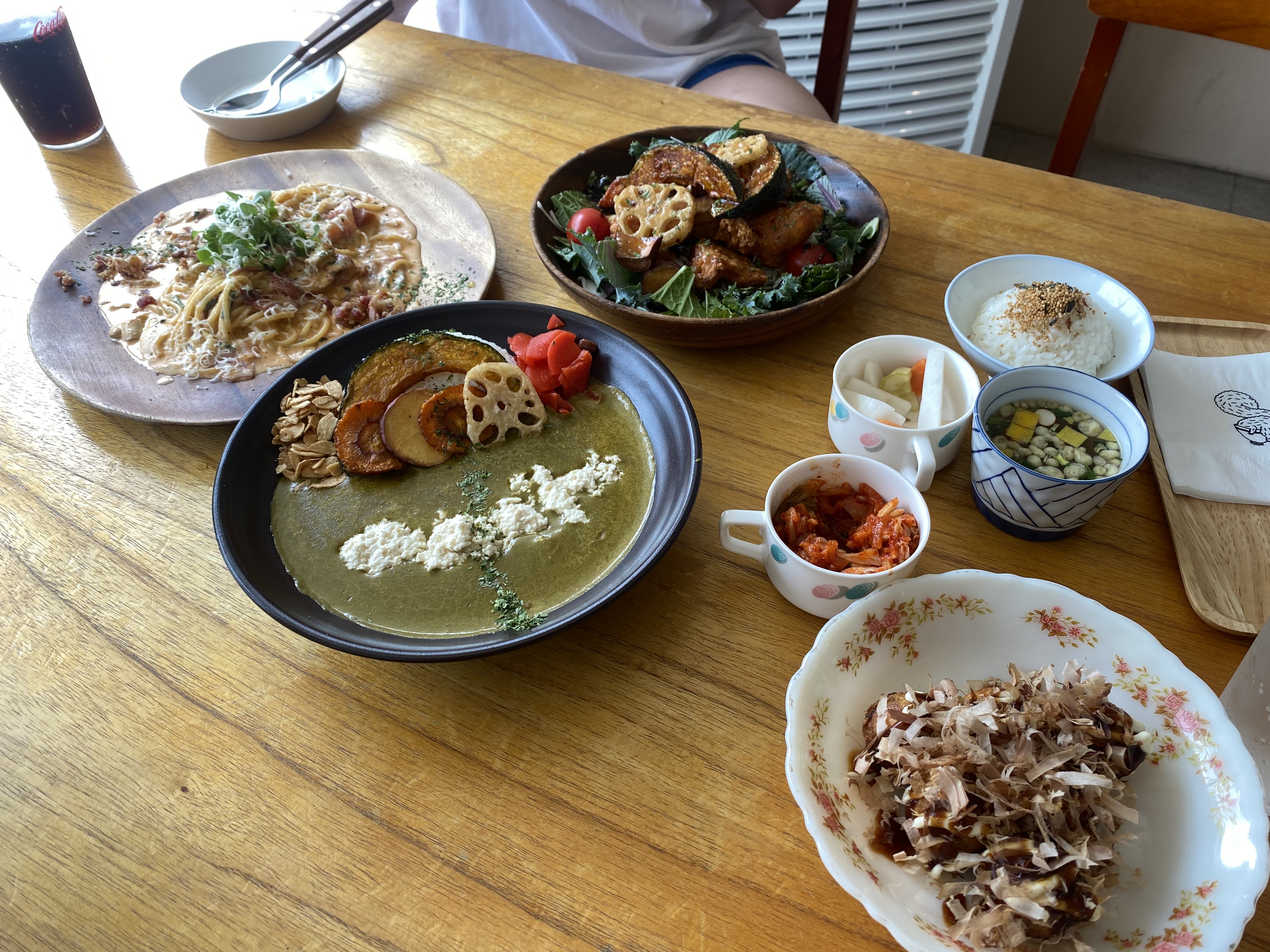 우리는 3인세트로 주문했고, 시금치두부카레와 타코야끼를 선택했다.