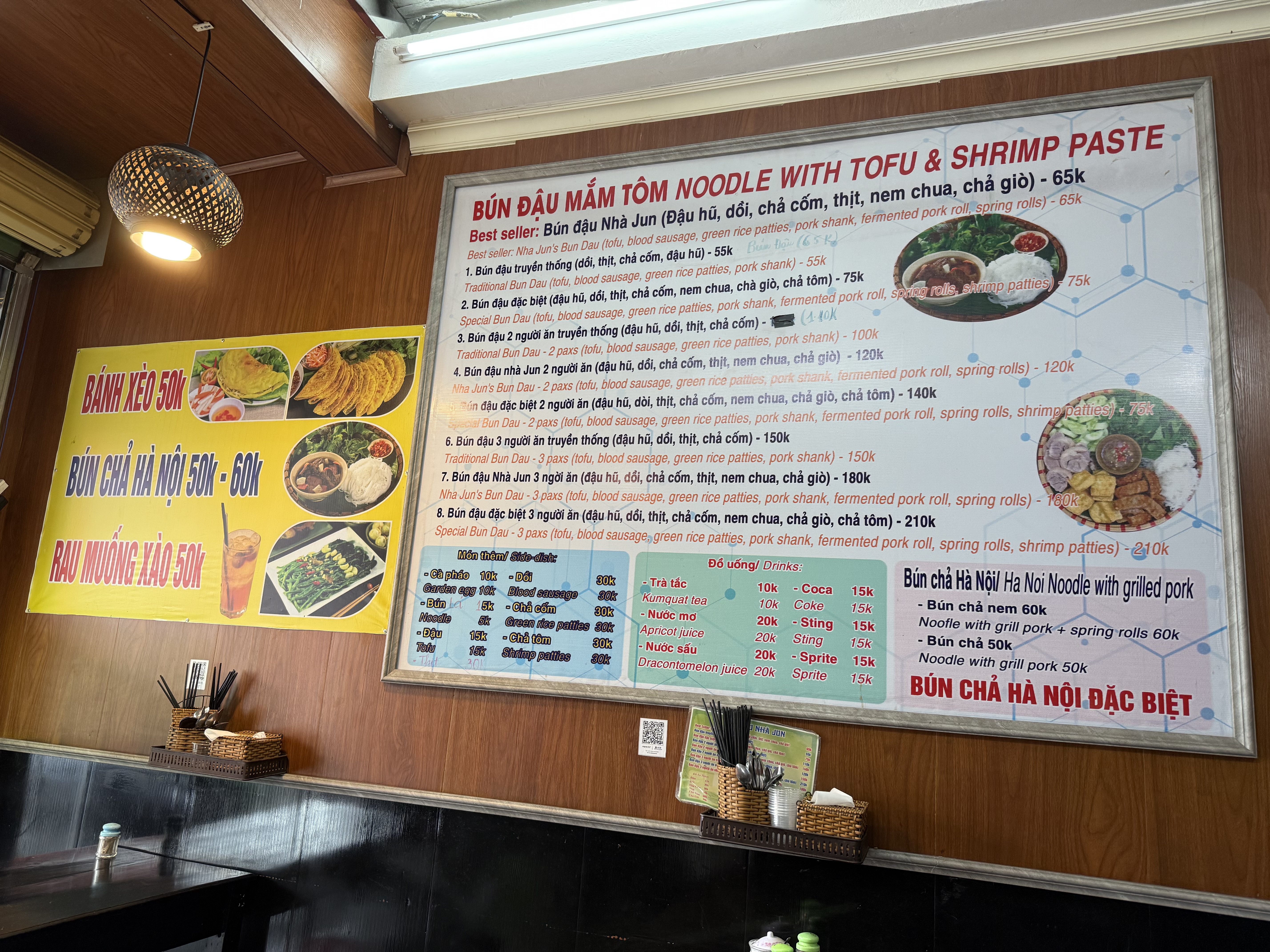 반쎄오도 50K, 분따우맘똠은 구성에 따라 65K부터 210K까지 다양했다.