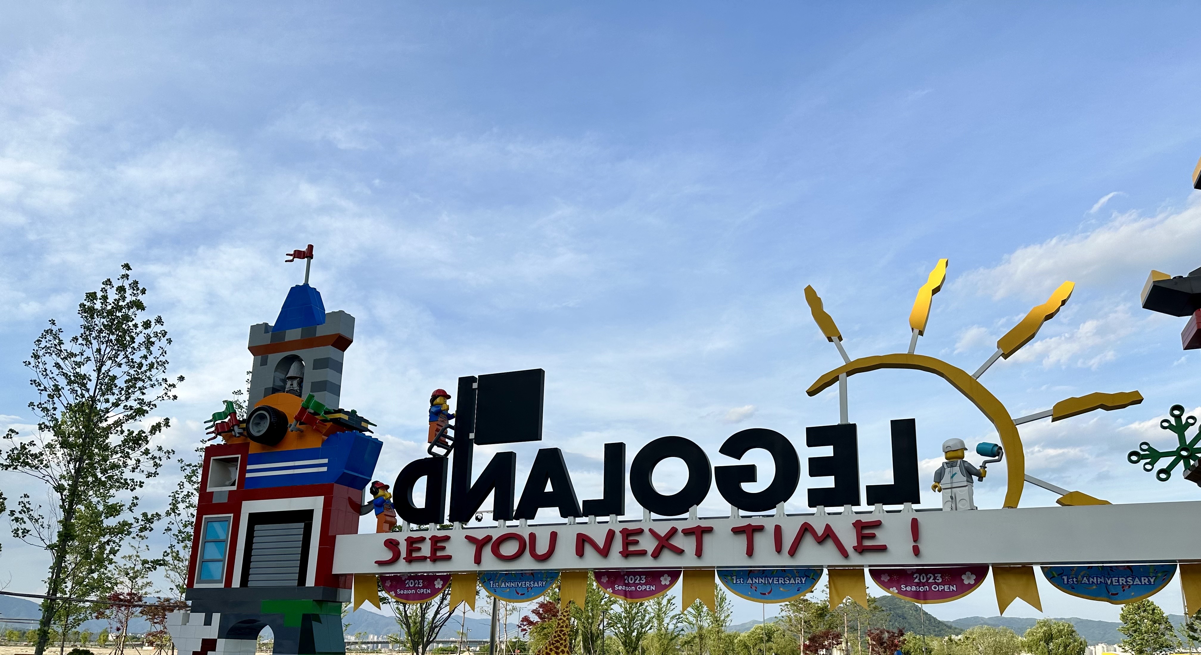 셔틀버스에서 내리고 들어가기 전에 레고랜드 앞에서 사진찍었다.