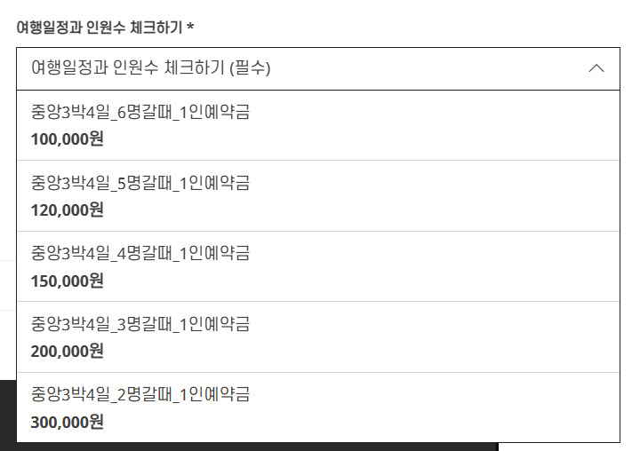 예약금은 인원에 따라 다르다.