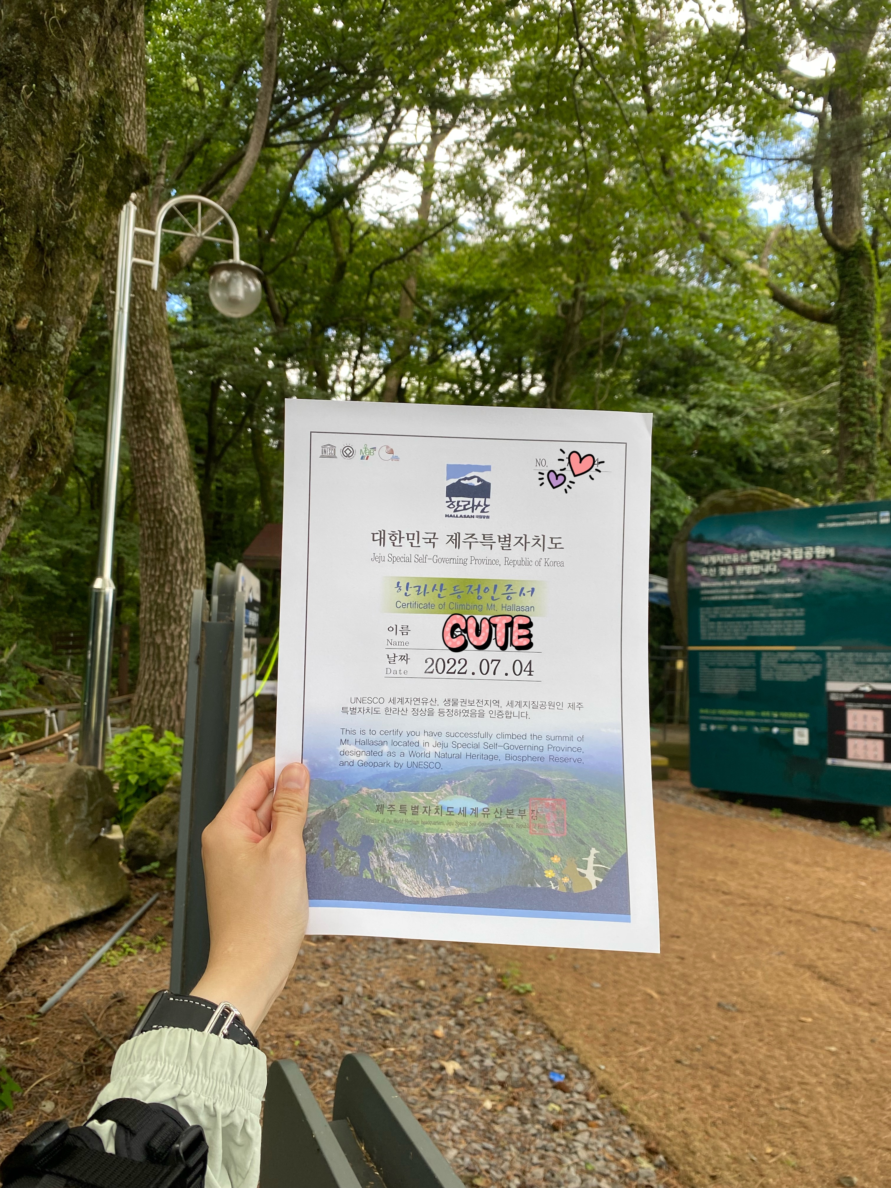 아! 정상에서 한라산등반인증서를 신청해야한다.